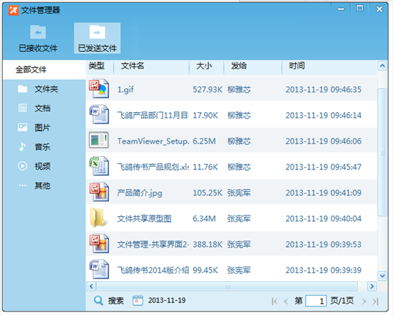 文件管理器,是飛鴿傳書新增模塊,可以查看并管理所有已發(fā)送文件和已接收文件,極大的提高了查找的便捷性。
