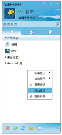 您可以通過右鍵菜單新建自定義分組,更好的管理好友列表,當這些自定義分組被刪除時,分組下的好友將恢復(fù)默認分組。