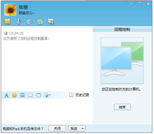 遠程控制,申請控制對方的計算機,對方接受請求后,可以查看對方計算機桌面并進行控制。