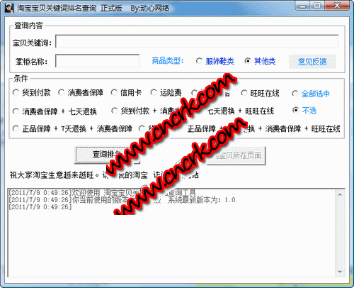 淘寶寶貝關(guān)鍵詞排名查詢 V2.1 簡體中文綠色免費(fèi)版 淘寶賣家專用??煞謼l件查詢 自己店鋪寶貝在淘寶上搜索的排名。