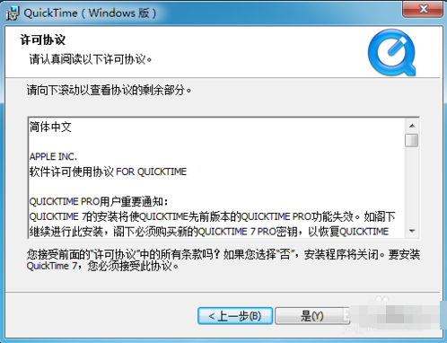 1、點擊運行QuickTime安裝程序,選擇下一步