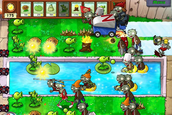 《植物大戰(zhàn)僵尸》(Plants vs. Zombies,簡稱PVZ)是由PopCap Games為Windows、Mac OS X及iPhone OS系統(tǒng)開發(fā),并于2009年5月5日發(fā)售的一款益智策略類塔防御戰(zhàn)游戲。玩家通過武裝多種植物切換不同的功能,快速有效地把僵尸阻擋在入侵的道路上。不同的敵人,不同的玩法構(gòu)成五種不同的游戲模式,加之夕陽、濃霧以及泳池之類的障礙增加了游戲挑戰(zhàn)性。