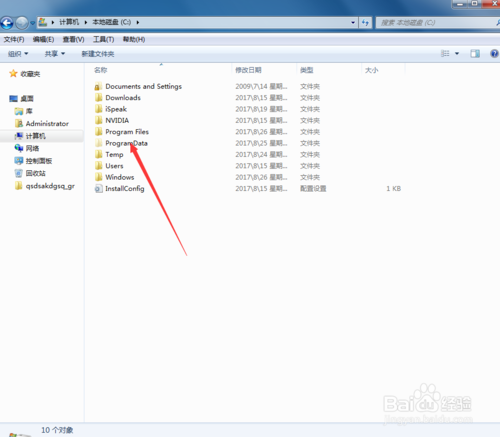 4、此時在打開的C盤中就可看到ProgramData文件夾了。
