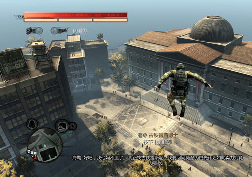 作用就是替Heller收集情報(bào),而且非常不專業(yè),大多數(shù)時候還是Heller自己去吸收關(guān)鍵人物獲取記憶更加靠譜,不過我想如果沒有他,Heller也許早晚會迷失掉自己,而且這種比較暴力的游戲,如果沒有一個NPC偶爾跟你打電話給你些建議吹吹牛什么的,玩起來會比較壓抑。