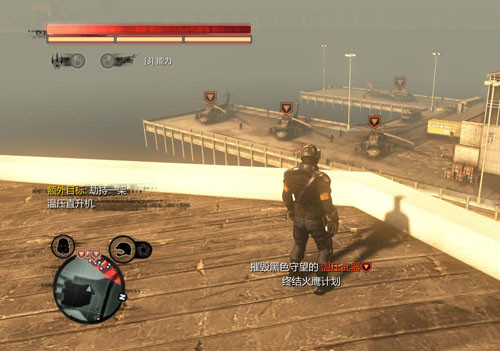 這里提示一下,你最好潛入進(jìn)入登上一輛火鷹直升機(jī)去摧毀火鷹直升機(jī)