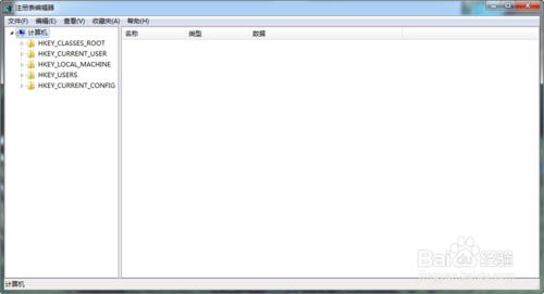 3、通過上邊兩種方法就可一打開“注冊表編輯器”,如下圖: