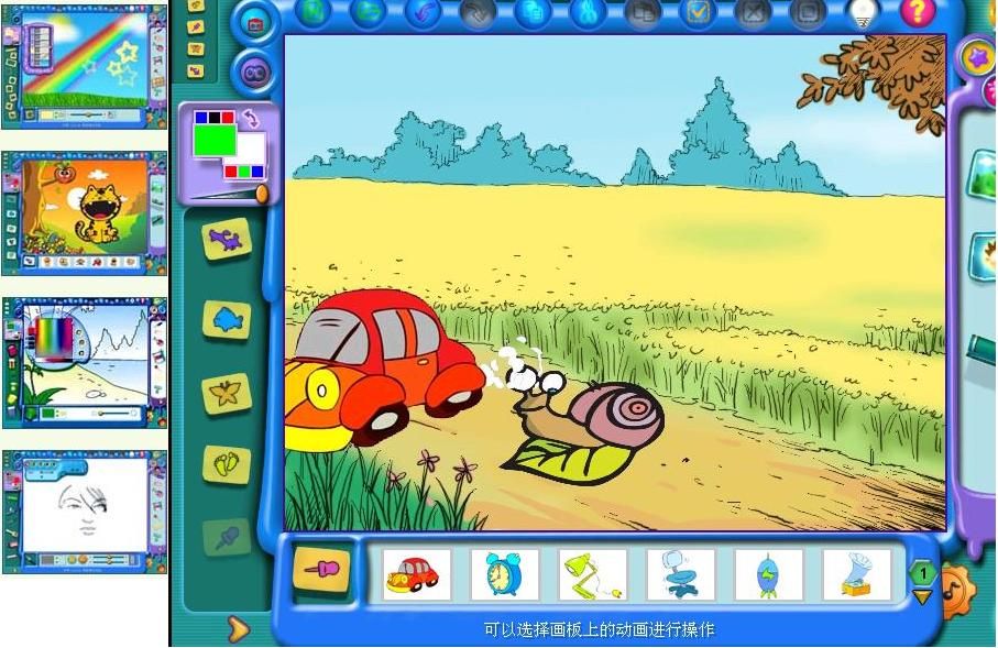 方便的倒色、克隆等工具可快速創(chuàng)作作品,變形工具可以讓畫面上的人和動物變得夸張有趣,增強小朋友的學習興趣。
