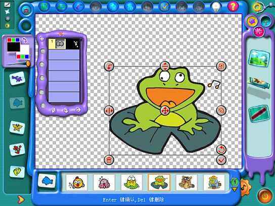 “圖庫”和“仙女袋”中帶有植物、動物、人物角色、背景、動畫等圖片達750多張,圖片大小、方向可任意調(diào)節(jié),動畫圖片還可播放可愛動畫,除了這些,現(xiàn)在你還可以將你喜歡的圖片和.gif的動畫增加到圖庫里。小朋友向往的童話仙境由此輕松產(chǎn)生。