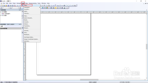 首先打開你的surfer,然后選擇“網(wǎng)格”-》“數(shù)據(jù)”