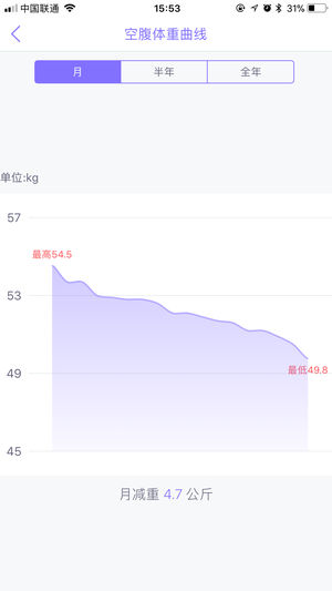 同步智能健康秤數(shù)據(jù),生成詳細(xì)的測評報告、健康曲線、記步減脂路上的點滴成就。