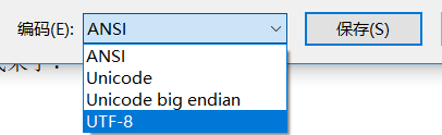 完成文本編輯,確定文本編碼為UTF8,保存,如下圖: