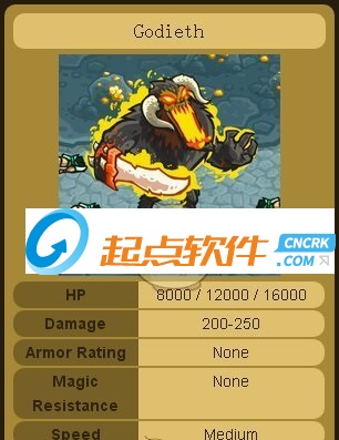 又一個關(guān)系不明的boss,不知道他哥到底是誰,可能是摩洛克也可能是某位炎魔,戈迪斯是炎魔,炎魔和惡魔實力貌似都差不多吧,好歹滅了個矮人國,恐怕戈迪斯自己都沒想到,之后的矮人居然造出了特斯拉、貝莎、地震機、高達等大殺器,實力表現(xiàn)可以接受,吐痰還是很惡心的,一口英雄就快掛了,傷害很高,砍死紅兵不在話下,路程又很短