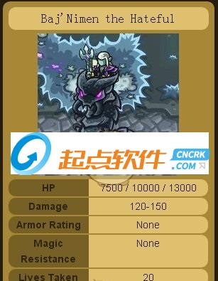 在敵人方面本作敵軍算不上豐富,但也十分具有針對性。各種擁有高護甲的兵種,高機動性的兵種,高血量的兵種,高魔法抗性的兵種一應(yīng)俱全,不同的敵人都需要針對性的防御設(shè)施來應(yīng)對,尤其到了游戲的中后期各種敵軍同時出現(xiàn),非??简炌婕覍τ诜烙O(shè)施與技能英雄的選擇釋放??梢哉f可玩性還是不錯的。