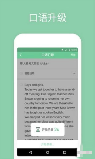 1、支持英語、數(shù)學(xué)雙科目;2、口語題型本地化,更貼合本地中考要求的口語答題流程,高效練習(xí),逐個擊破;