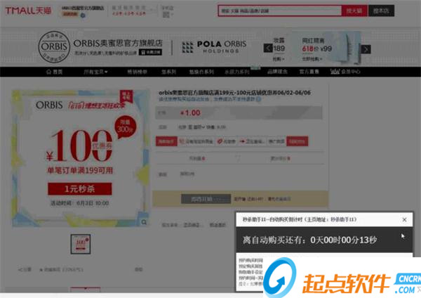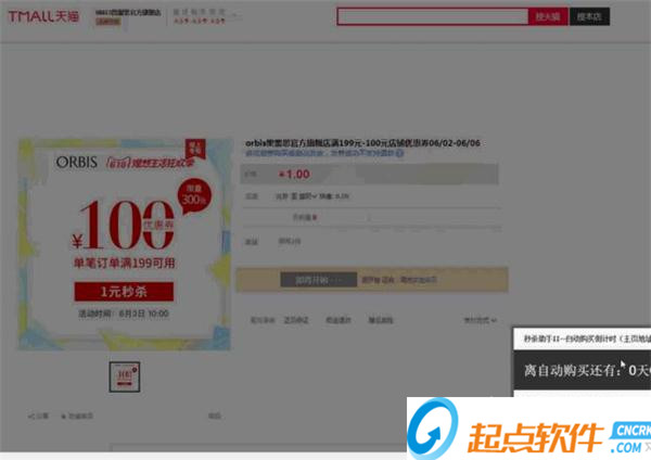 秒殺助手運(yùn)行后,taobao、tmall頁(yè)面左上角會(huì)出現(xiàn)計(jì)時(shí)器: