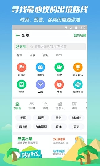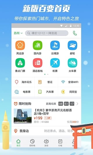 --提供自助游、跟團游等服務,以及熱門城市周邊、國內(nèi)、出境旅游線路價格查詢和預訂。