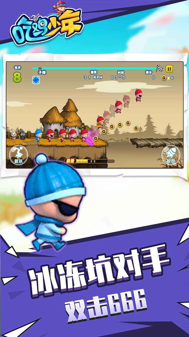 吃雞少年是個(gè)無(wú)盡跑酷玩法的游戲,吃雞少年采用面向低齡的卡通畫(huà)風(fēng),有著經(jīng)典的動(dòng)作玩法和競(jìng)技內(nèi)容,而且可以八人在線(xiàn)同時(shí)奔跑,獨(dú)特雙角色設(shè)計(jì),自由培養(yǎng)搭配,憑借實(shí)力,把把吃雞。