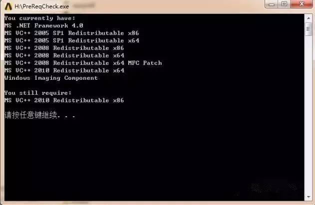 5、點擊任意鍵繼續(xù)進行軟件安裝,如果你還需要安裝其它組件,可以運行 InstallPreReqCheck 可以自動安裝