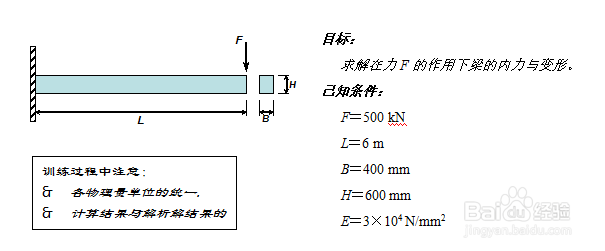 ANSYS入門教程,實例入門使用ANSYS分析一個矩形截面簡支梁。問題條件如圖所示: