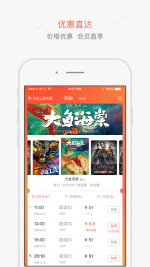 1.更低價格:3至6折的觀影價格絕對不容錯過。票價及活動信息與網(wǎng)頁端完全一致;2.便捷注冊:您只需要通過手機號碼即可快速完成注冊,享受快捷購票,參與優(yōu)惠活動;