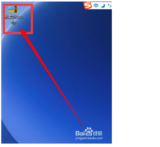 6、這時(shí)桌面上就多了一個(gè)“新建文件文件夾”壓縮包?。ǖ酱司徒o一個(gè)文件進(jìn)行了加密)