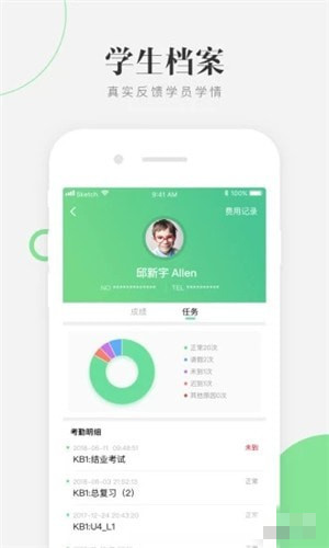 3、班級(jí):管理學(xué)生檔案、班級(jí)檔案、課程大綱,查看詳細(xì)的學(xué)生成績動(dòng)態(tài)、作業(yè)動(dòng)態(tài)、考勤動(dòng)態(tài);