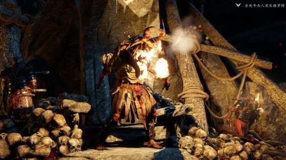 第二階段是當(dāng)牛頭人半血的時(shí)候,會(huì)發(fā)生劇情,直接滿血,然后會(huì)施展沖鋒,不要慌也不要按鍵,每次沖鋒靠近我們的時(shí)候會(huì)出現(xiàn)QTE,順著按就會(huì)利用盾牌將牛頭人翻到身后去!