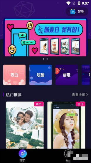 指尖是一款集圖片和視頻創(chuàng)意于一體的視頻制作App,提供各式各樣的素材模板,讓用戶一鍵生成,定制自己的專屬視頻作品。模板類型包括逗趣、搞笑、黑科技、深情表白、節(jié)日祝福等等,廣泛被分享于微信朋友圈和抖音。