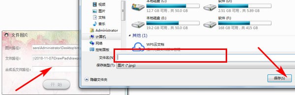 4、選擇文件及圖片合并后,保存的路徑,輸入圖片名稱