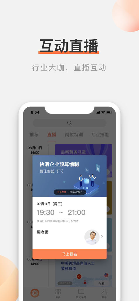 名師課堂:實操課程,能力提升互動直播:行業(yè)大咖,直播互動