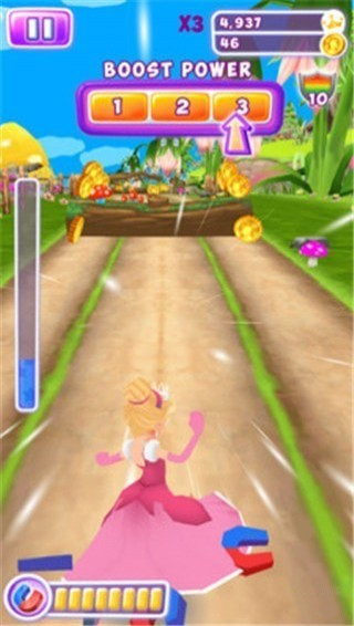 童話運(yùn)行公主賽車?yán)?,它始終是重要收集盡可能多的硬幣可能。收集足夠的硬幣后,你將能夠觀看彩虹在天空中出現(xiàn)的驚人的硬幣升壓開始!雖然彩虹是在你前面,一定要跳,以收集盡可能多的硬幣外盡可能幻燈片。