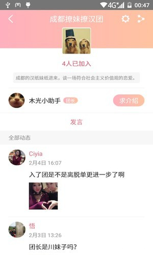 在單身團(tuán)中,你可以記錄單身生活的一點(diǎn)一滴,也可以加入有興趣的單身團(tuán),和其他的單身小伙伴一起玩耍、脫單。