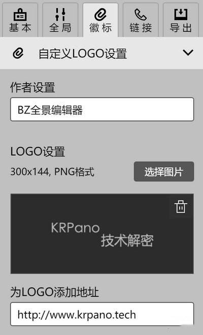 在徽標(biāo)設(shè)置頁(yè),可以設(shè)置作者信息,LOGO信息,以及跳轉(zhuǎn)網(wǎng)址信息