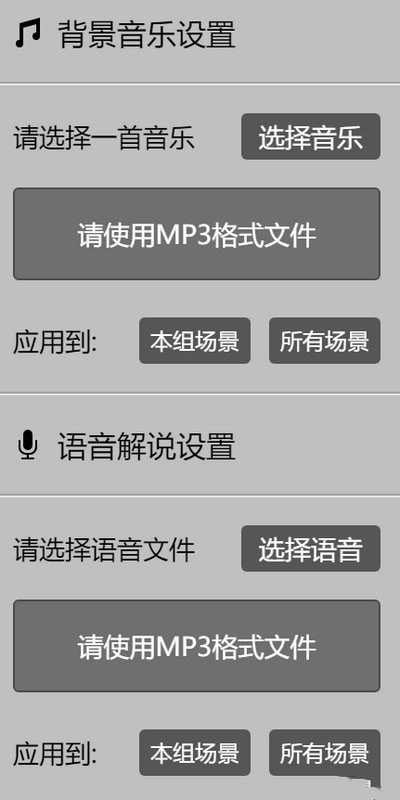 在音樂設(shè)置頁(yè),可以添加音樂,或者聲音解說(shuō)