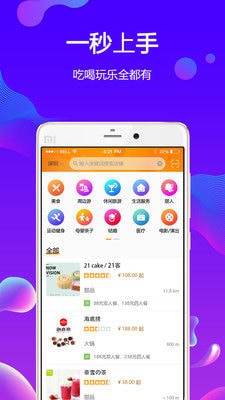 1、簡潔的用戶界面設(shè)計,一秒上手,方便使用;2、涵蓋各個生活消費場景,吃喝玩樂全都有;
