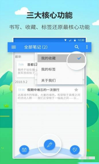 三大核心功能:書(shū)寫(xiě)、收藏、標(biāo)簽還原最核心功能