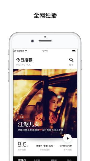 獨(dú)家首映:『歡喜首映』根植于強(qiáng)大的正版資源庫(kù),為用戶精選推薦海內(nèi)外優(yōu)質(zhì)好電影。極簡(jiǎn)主義:可在App、Pad、PC多屏任意終端看電影,界面極簡(jiǎn)清爽,無(wú)任何廣告干擾。