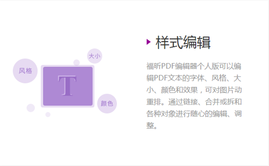 福昕PDF編輯器可以編輯PDF文本的字體、風(fēng)格、大小、顏色和效果,可對圖片動重排。通過鏈接、合并或拆和各種對象進(jìn)行隨心的編輯、調(diào)整。