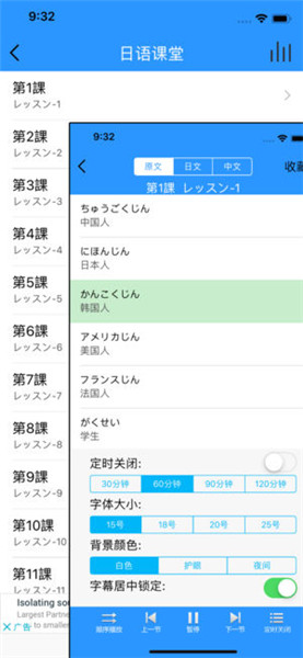 日語(yǔ)課堂,內(nèi)容涵蓋,新版中日交流標(biāo)準(zhǔn)日本語(yǔ),大家的日語(yǔ)中級(jí)單詞,日語(yǔ)口語(yǔ),日語(yǔ)單詞,日語(yǔ)生詞,日語(yǔ)會(huì)話,常用日語(yǔ)口語(yǔ)短句,課程無(wú)需二次下載,一次下載終身免費(fèi)使用。眼睛累了耳朵聽(tīng),定時(shí)播放,學(xué)習(xí)時(shí)間自己定。更多精彩敬請(qǐng)下載體驗(yàn)。