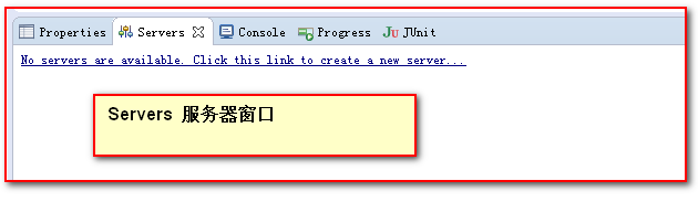 1)在Servers窗口中,點(diǎn)擊 創(chuàng)建 server 的文字提示連接。如下圖: