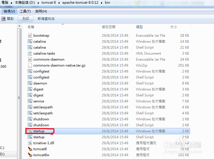 Tomcat啟動(dòng),還有一種啟動(dòng)的方法就是在命令行中,先把你的當(dāng)前目錄切換 到你tomcat目錄\bin目錄下,如下是我的位置