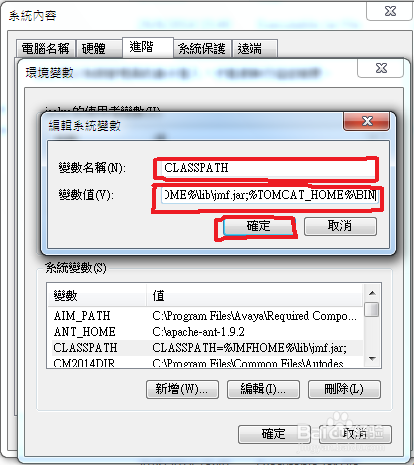 新增或者編輯“變量名:CLASSPATH”,變量值就是%TOMCAT_HOME%\BIN,實(shí)際上就是指定tomcat的路徑。