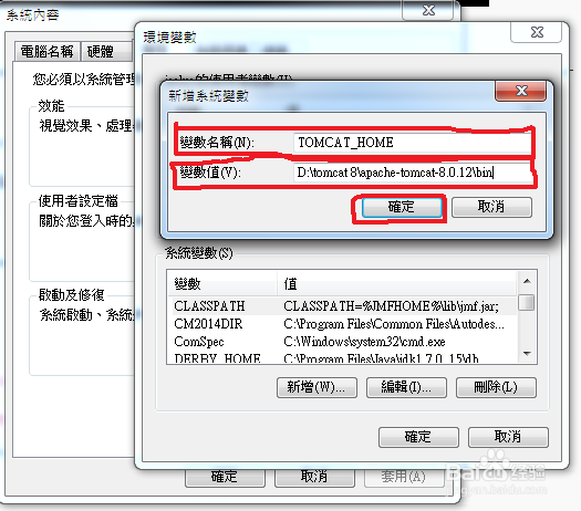 “變量值”欄填寫:D:\Program Files\Tomcat