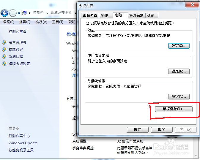 選擇“環(huán)境變量”,進(jìn)行環(huán)境變量的設(shè)置。如下圖: