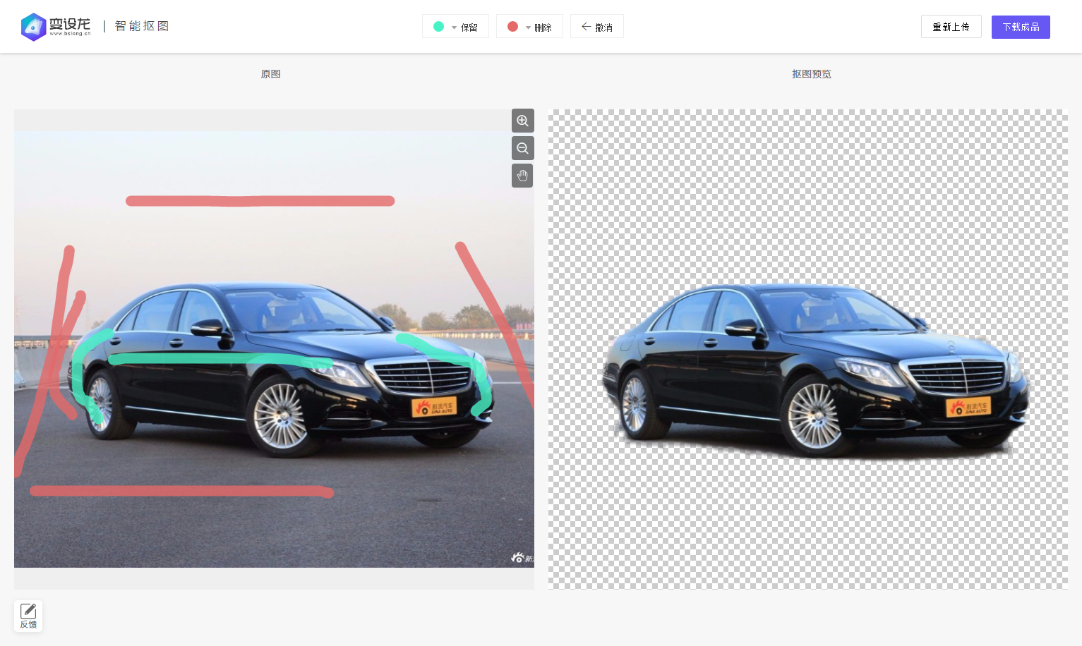 1、打開變設(shè)龍,找到頂部導(dǎo)航中的智能摳圖欄目,或者點擊傳送門:在線摳圖神器進行跳轉(zhuǎn)。2、進入智能摳圖頁面后可以看到有兩種選擇,一種是純色背景摳圖和復(fù)雜背景摳圖,根據(jù)圖片進行不同的選擇。