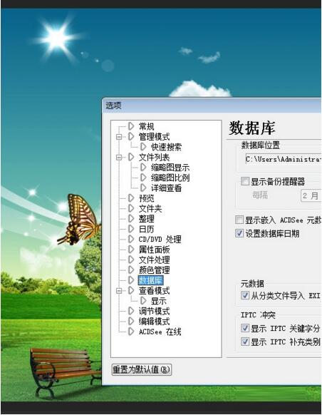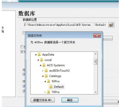 5、在數(shù)據(jù)庫位置后面有個文件夾圖標,點擊打開選擇一個其他位置,設置好后重新啟動ACDSeePro5;