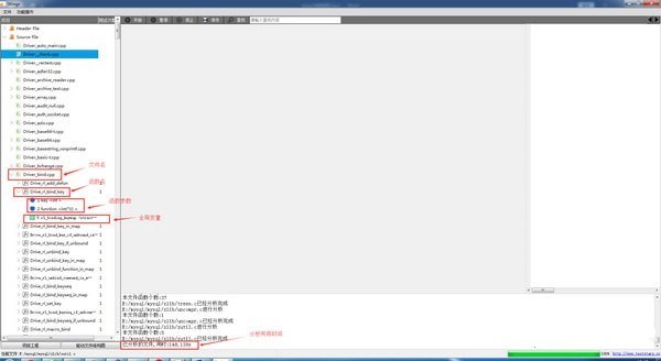 第二步:點(diǎn)擊工程操作中的分析生成, 對(duì)工程目錄下的.c文件進(jìn)行解析,保存為XML的格式,生成的文件保存在工程目錄下的FunXml與GlobalXml中,分別是函數(shù)信息與全局變量的信息,點(diǎn)擊驅(qū)動(dòng)文件結(jié)構(gòu)圖,即可看到對(duì)應(yīng)文件的函數(shù)結(jié)構(gòu)信息。