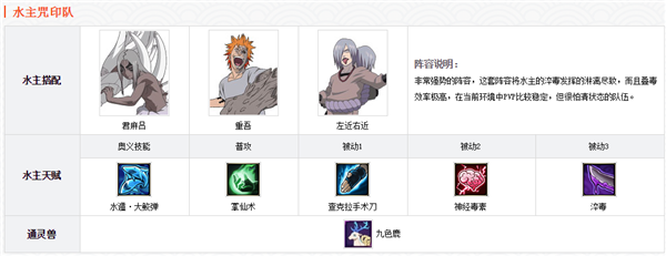 陣容優(yōu)點(diǎn):此陣最大的特點(diǎn)就是正面難以突破,后出手全清不良狀態(tài)。估計(jì)對面毒火流會想哭(畢竟這個陣容我沒試過)。前排有打斷,有回復(fù),鼬可以補(bǔ)刀。