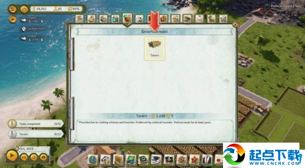 海島大亨6怎么修建建筑?玩家可以點(diǎn)擊下方功能菜單錘頭圖標(biāo)進(jìn)行建筑修建。