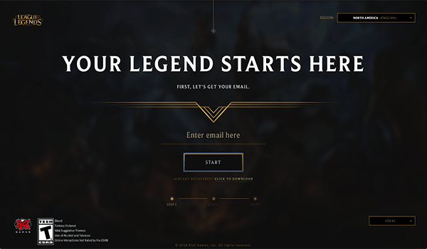 5、沒(méi)有賬號(hào)的玩家,如上圖所示,點(diǎn)擊“創(chuàng)建賬號(hào)”,這時(shí)候會(huì)跳轉(zhuǎn)到拳頭公司的LOL賬號(hào)注冊(cè)頁(yè)面,注冊(cè)賬號(hào),在登陸游戲即可。